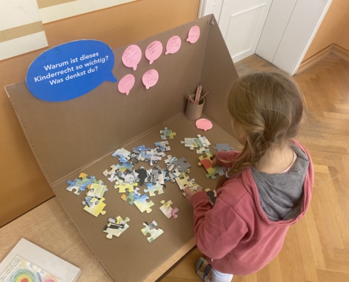 “Die Rechthaber” ist ein Kunstprojekt mit Kindern im Alter von 6 bis 10 Jahren. Im Projekt sollen die Kinderrechte ganz genau unter die Lupe genommen werden. Bisher sind Fotocollagen und ein Tanzstück entstanden. Am 20.11.25 – zum 36. Geburtstag der Kinderrechte wird eine interaktive Ausstellung für Kinder und Eltern die Kinderrechte nochmal besonders in den Fokus rücken. Der Fokus liegt auf der partizipativen Arbeit und der Selbstwirksamkeit der beteiligten Kinder. Sie sollen nicht nur ihre Kinderrechte kennen und benennen können, sondern aufklärerisch tätig werden, ihr Umfeld sensibilisieren und Ideen entwickeln, wie sie ihre Rechte im Alltag vertreten können.